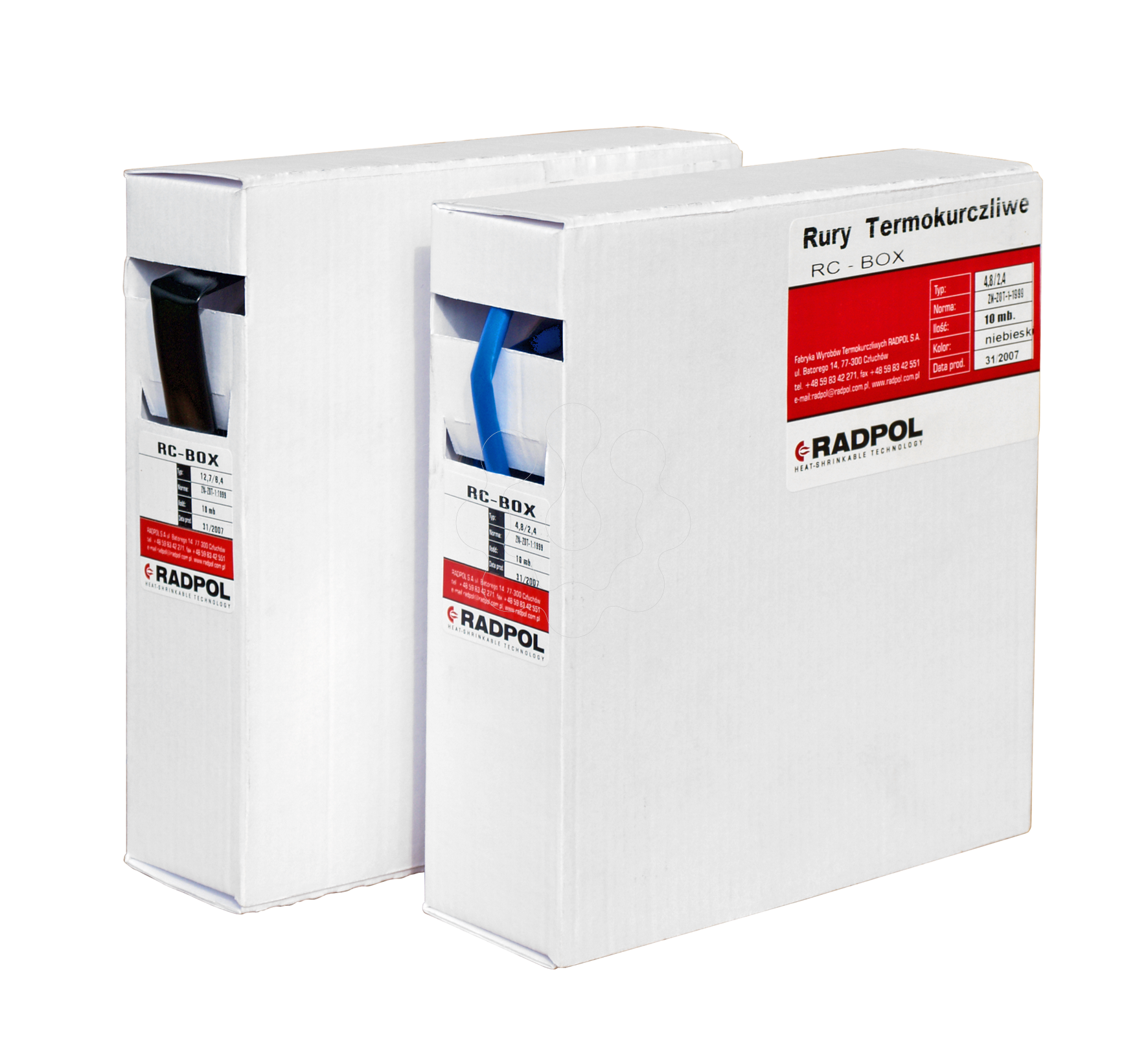 Caixa c/ Rolo 10m Termoretrátil RCH1 12,7/6,4 Preto. Tubo termoretráctil 10m preto BOX RCH1 12,7/6,4x10. Caixa com rolo de 10m de tubo termoretratil parede fina RCH1.Tubos resistentes aos raios UV, em cor preta e sem halogénio.Quando aquecidos a +115ºC os tubos assumem a forma do material ao qual estão a ser aplicados. Formam uma camada de caracter isolante, anticorrosiva e decorativa.