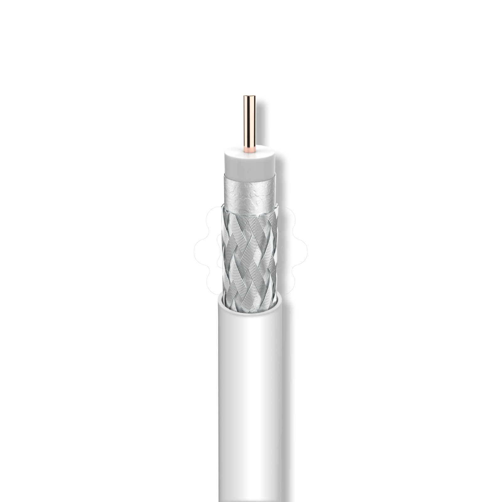 Cabo coaxial T100, 16VAtC Euroclasse Eca e blindagem de classe A. Cabo coaxial T100, 16VAtC Euroclasse Eca e blindagem de classe A. Cabo coaxial RG-6 com condutor central em cobre e malha em alumínio (Cu/Al), com uma excelente cobertura da malha (77%). Um cabo 16VAtC, de dupla blindagem e cobertura PVC. Cor: Branco, Tipo de bobina: Cartão, 100 METER.. Condutor interno fabricado em cobre e malha em alumínio. Blindagem de Classe A. Euroclasse Eca.