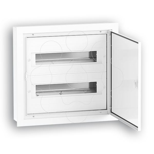 Caixas Quadro, de 16 a 72 módulos, com 125mm de profundidade. Inclui barramentos isolados neutro e terra, máscaras e etiquetas de marcação de circuitos. Chassi amovível.