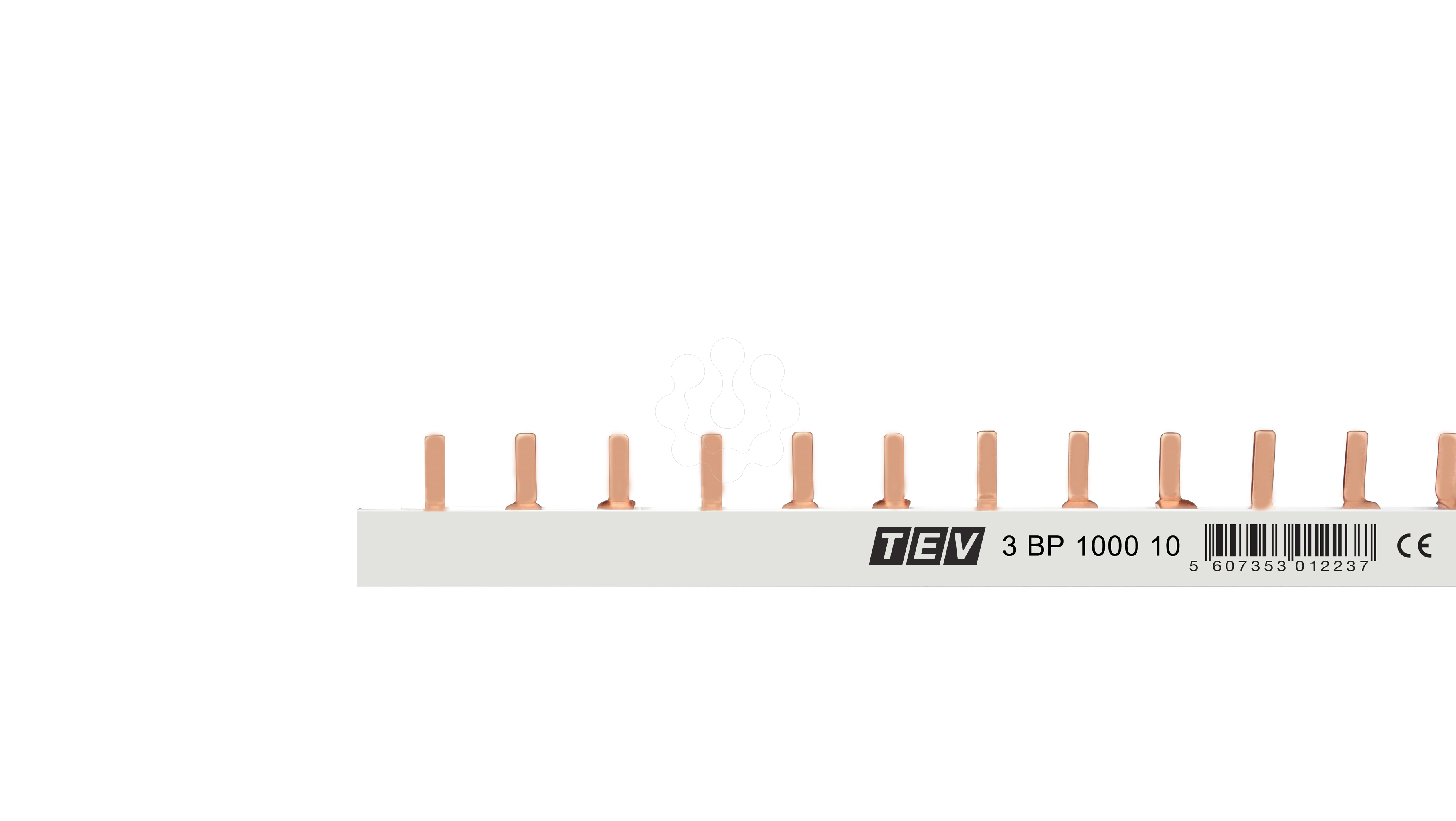 BARR. PONT. 10 mm² 1000 mm 3P. BARRAMENTO DE PONTEIRA 10mm² 1000mm TRIPOLAR. Em conformidade com a norma EN 61439-1-6 Cobre Eº CU S8/F25 - DIN 1787 Isolamento em plástico auto-extinguível - Ultramid Resistência a curto circuitos <25KA Sem halogéneos