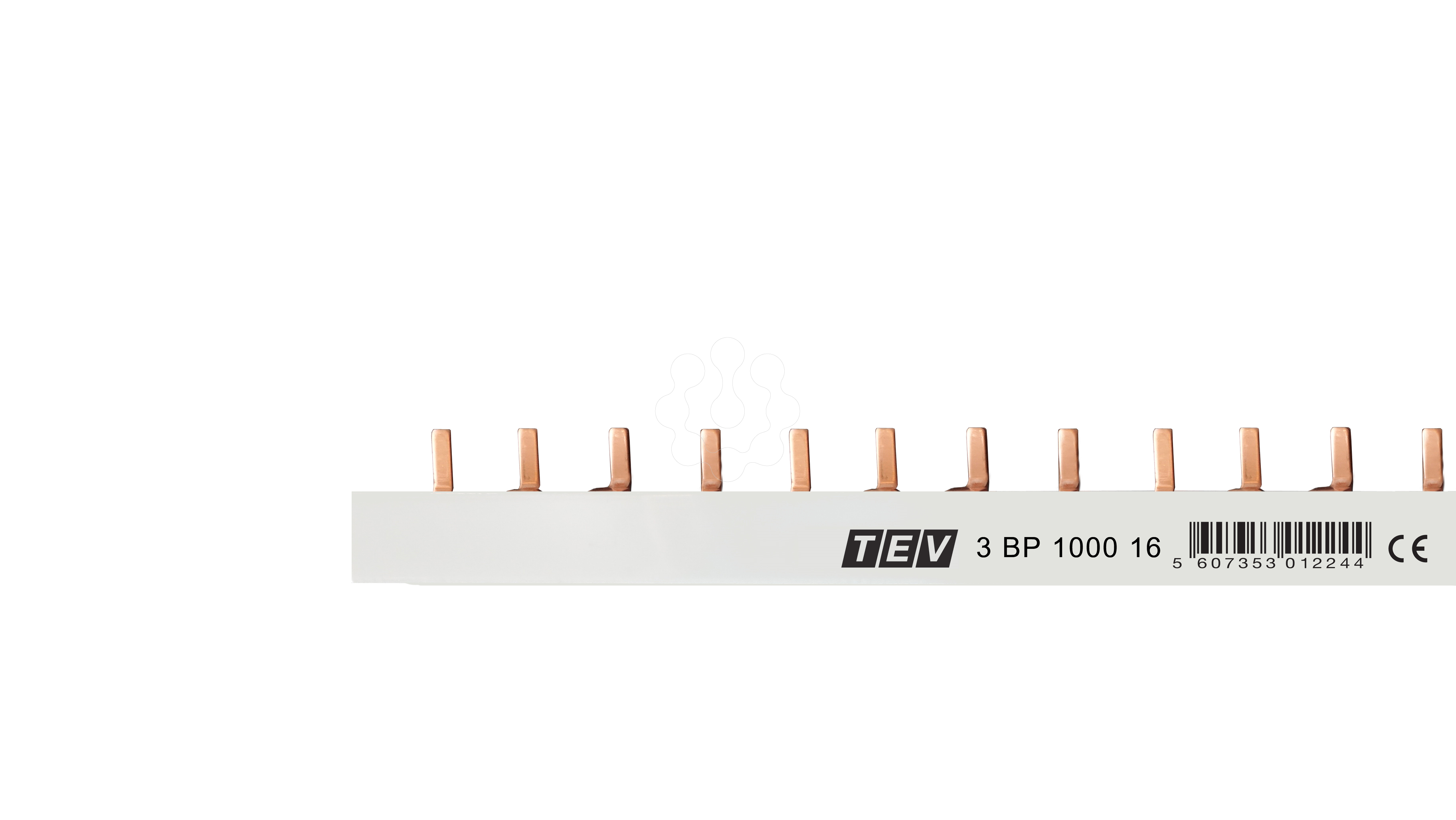BARR. PONT. 16 mm² 1000 mm 3P. BARRAMENTO DE PONTEIRA 16mm² 1000mm TRIPOLAR. Em conformidade com a norma EN 61439-1-6 Cobre Eº CU S8/F25 - DIN 1787 Isolamento em plástico auto-extinguível - Ultramid Resistência a curto circuitos <25KA Sem halogéneos