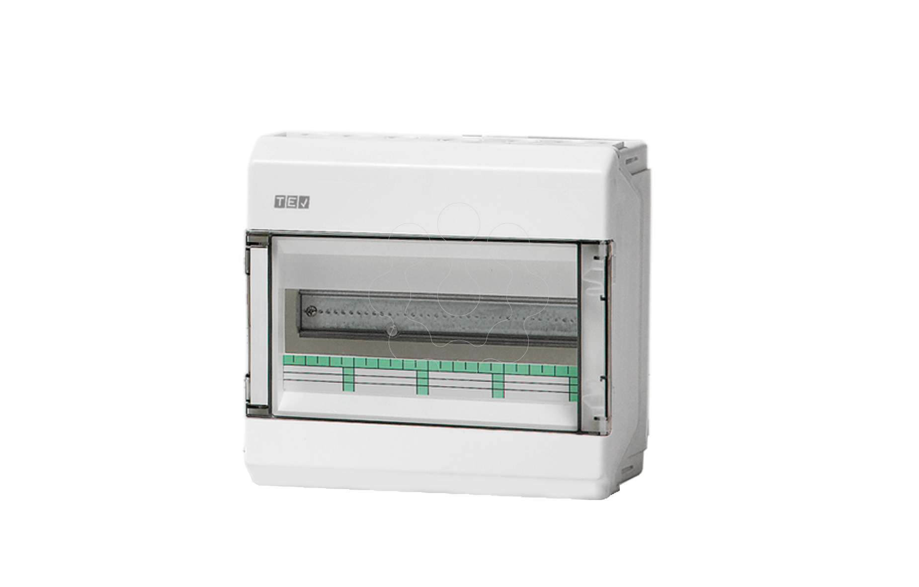 QDR DIST SAL SP PT TRP 1F 12M BRC. QUADRO DE DISTRIBUIÇÃO MONTAGEM SALIENTE PORTA TRANSPARENTE 1 FILA 12 MÓDULOS BR. Em conformidade com a norma EN 61439-3 Para montagem saliente Fabricados em termoplástico Cor: branco RAL 9010 Porta transparente, reversível e com abertura a 180º Instalação de equipamentos em calha (35 mm) EN50022 Espaço de 20 mm entre calha e o fundo da caixa para passagem de cabos Com entradas métricas pré-marcadas Características mecânicas: material poliestireno Tensão de isolamento 400V. Tensão nominal AC 230/400V. Humidade máxima (50%HR a + 40ªC) Classe II de isolamento IP40/IK07 Sem halogéneos Acessórios incluídos: Equipado com ligador T/N, Ref.:SL16N16T Etiqueta para identificação do circuito Opção: Cor cinza RAL 7035 Ligador rápido fixconnect