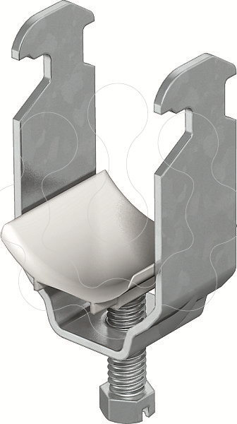 Adequada para todos os perfis C com largura de rasgo de 16-17 mm. Abraçadeira e parafuso em aço galvanizado a quente após maquinação, placa em polipropileno, livre de halogéneos, cinzento claro RAL 7035.