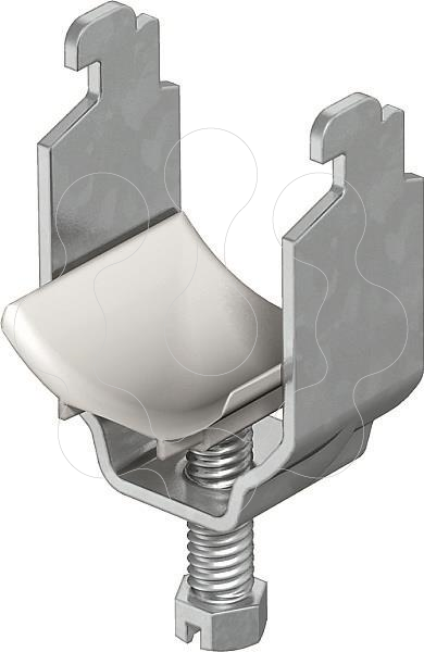 Adequada para todos os perfis C com 11-12 mm de largura de rasgo, pelo menos 6,5 mm de altura interior e pelo menos 18,5 mm de largura interior. Abraçadeira e parafuso em aço galvanizado a quente após maquinação. Placa em polipropileno, cinzento claro RAL 7035, livre de halogéneos.