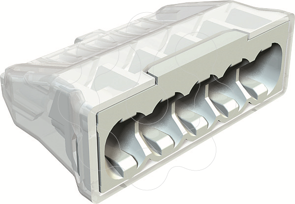 Testado conforme a EN 60998 Ligador sem parafusos para a ligação de condutores unifilares. Secção nominal: 5 x 0,5 mm² - 2,5 mm² condutor unifilar 5 x 1,5 mm² - 2,5 mm² condutor rígido multifilar Tensão nominal 450 V Corrente nominal 24 A Comprimento não isolado: 8-9 mm Abertura de teste: multímetro e busca polos (Ø máx. de 2 mm) Temperatura ambiente máx. permitida conforme a EN 60998: 90°C.