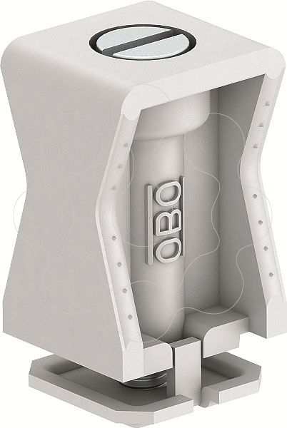 Também adequada a perfis com largura de rasgo de 11 - 12 mm, corpo das abraçadeiras em poliestireno, resistente ao choque, livre de halogéneos, cinzento claro RAL 7035, peças metálicas em aço, galvanizado a zinco.