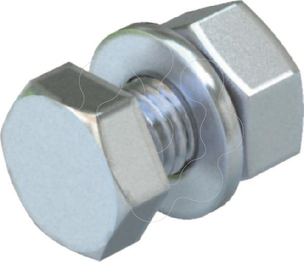 Parafuso sextavado para a fixação universal de componentes em estruturas. Inclui porca sextavada e 2 anilhas.