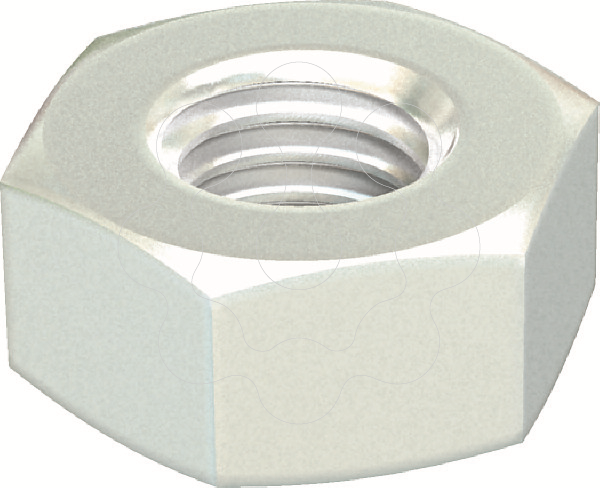 Porca sextavada com rosca métrica conforme norma DIN 934.