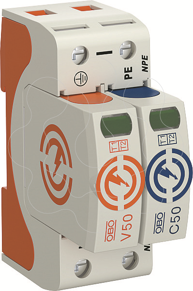 Descarregador combinado, de corrente de raio e sobretensões, tipo 1+2 • para ligação equipotencial de proteção contra descargas atmosféricas conforme a VDE 0185-305 (IEC 62305) • capacidade de descarga de correntes de raio 50kA (10/350)
