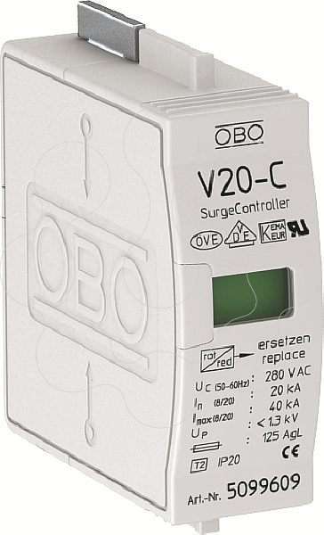 Módulo de substituição - descarregador de sobretensões do tipo 2 • Módulo encaixável e separável da base sem ferramentas • Incl. dispositivo de separação térmico e indicação visual de avaria • Elevada condutividade de energia com longa durabilidade