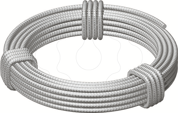Cabo de aço na versão galvanizada a zinco com elemento de inserção em fibra (alma de cânhamo). Cabo Ø 2 - 6 mm: Cabo de tração de secção circular 6 x 7 conforme a DIN 3055. Cabo Ø 8 - 10 mm: Cabo de tração de secção circular 6 x 19 conforme a DIN 3060. Tensão de rutura mínima 1770 N/mm².
