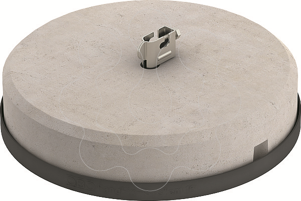 • Sistema composto por base FangFix com anel de proteção de arestas e ganchos de fixação • Gancho de fixação FangFix em VA, cumpre requisitos conforme a VDE 0185-305 (IEC 62305) • Pedra de 16 kg com Ø de 365 mm, elevada estabilidade • Montagem rápida e simples da haste captora através de buchas • Betão, resistente à geada • A base FangFix pode ser empilhada • Adequado para haste captora do tubo com Ø de 16 mm