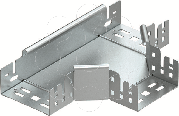 Derivação simples em T, com sistema de conector rápido. Para todos os tipos de caminhos de cabos em chapa com a altura lateral de 60 mm.
