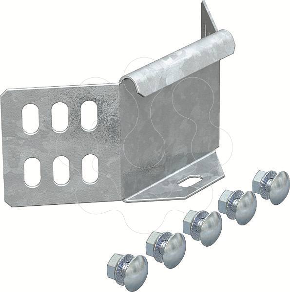 União curva para caminhos de cabos em chapa com uma altura de aba de 60 mm.