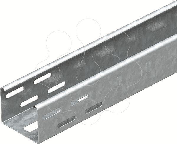 Esteira de suporte para luminárias com base perfurada para fixação de luminárias e para a passagem de cabos.