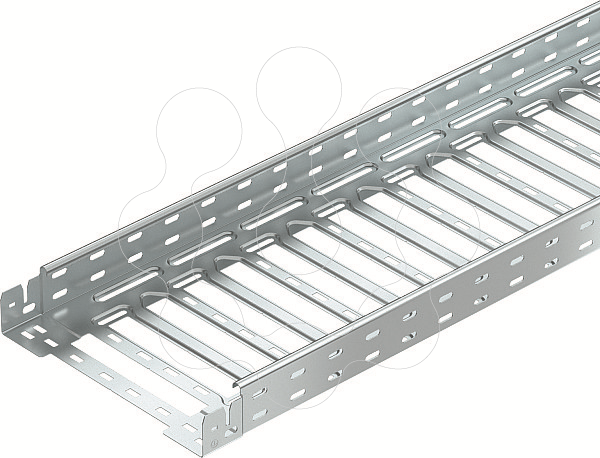 Caminho de cabos em chapa com união de encaixe rápido integrada. O comprimento útil do caminho de cabos em chapa é de 3.000 mm. O caminho de cabos possui uma perfuração lateral contínua de 7 x 20 mm para a instalação de componentes adicionais de ligação e montagem. Caminho de cabos com largura de 200 mm com perfuração de 30%, de acordo com a diretriz VdS 2092, adequado para uso em sistemas de aspersão.