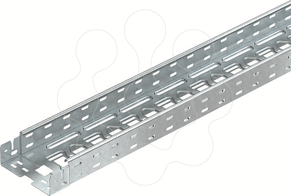 Caminho de cabos em chapa com união de encaixe rápido integrada. O comprimento útil do caminho de cabos em chapa é de 3.000 mm. O caminho de cabos possui uma perfuração lateral contínua de 7 x 20 mm para a instalação de componentes adicionais de ligação e montagem. A partir da largura de caminhos de cabos em chapa de 200 mm com 30% de perfuração, conforme a diretiva VdS 2092, adequados para aplicação por baixo de sistemas de pulverizadores.