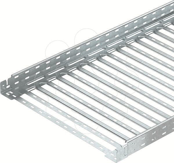 Caminho de cabos em chapa com união de encaixe rápido integrada. O comprimento útil do caminho de cabos em chapa é de 3.000 mm. O caminho de cabos possui uma perfuração lateral contínua de 7 x 20 mm para a instalação de componentes adicionais de ligação e montagem. A partir da largura de caminhos de cabos em chapa de 200 mm com 30% de perfuração, conforme a diretiva VdS 2092, adequados para aplicação por baixo de sistemas de pulverizadores.