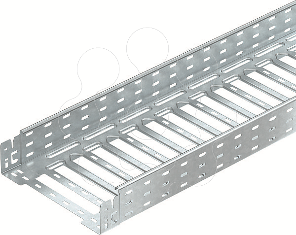 Caminho de cabos em chapa com união de encaixe rápido integrada. O comprimento útil do caminho de cabos em chapa é de 3.000 mm. O caminho de cabos possui uma perfuração lateral contínua de 7 x 20 mm para a instalação de componentes adicionais de ligação e montagem. A partir da largura de caminhos de cabos em chapa de 200 mm com 30% de perfuração, conforme a diretiva VdS 2092, adequados para aplicação por baixo de sistemas de pulverizadores.