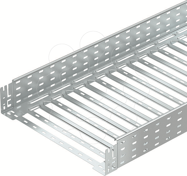 Caminho de cabos em chapa com união de encaixe rápido integrada. O comprimento útil do caminho de cabos em chapa é de 3.000 mm. O caminho de cabos possui uma perfuração lateral contínua de 7 x 20 mm para a instalação de componentes adicionais de ligação e montagem. A partir da largura de caminhos de cabos em chapa de 200 mm com 30% de perfuração, conforme a diretiva VdS 2092, adequados para aplicação por baixo de sistemas de pulverizadores.