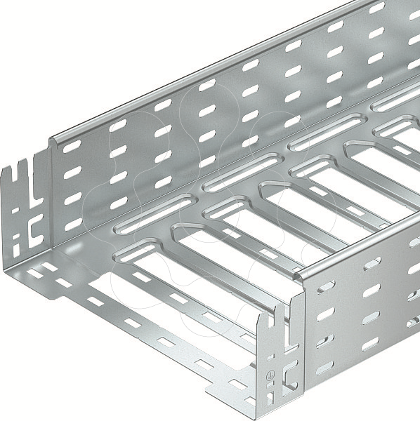 Caminho de cabos em chapa com união de encaixe rápido integrada. O comprimento útil do caminho de cabos em chapa é de 3.000 mm. O caminho de cabos possui uma perfuração lateral contínua de 7 x 20 mm para a instalação de componentes adicionais de ligação e montagem. A partir da largura de caminhos de cabos em chapa de 200 mm com 30% de perfuração, conforme a diretiva VdS 2092, adequados para aplicação por baixo de sistemas de pulverizadores.