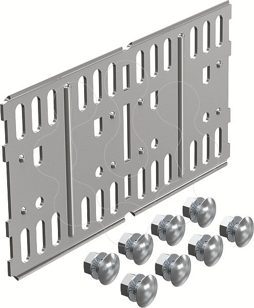 Uniões longitudinais e angulares para caminhos de cabos em chapa e acessórios com 110 mm de altura lateral.