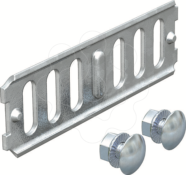 União longitudinal para ligações diretas de caminhos de cabos em chapa e acessórios com 35 mm de altura lateral.