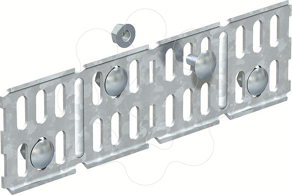 Uniões retas e curvas para caminhos de cabos em chapa e acessórios com 60 mm de altura lateral.