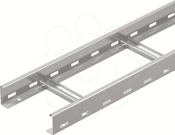 Caminho de cabos tipo escada com aba perfurada de 60 mm com degraus em perfil C, rebitados e abertos para cima (versão VS).