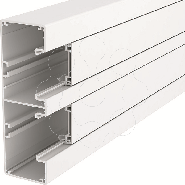 Calha técnica completa em alumínio, composta por base e tampa. A base não tem o fundo perfurado.