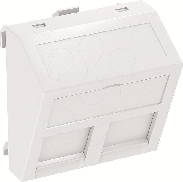 Espelho para conectores de dados com saída inclinada e fecho de corrediça para alojamento de dois conectores RJ45. A saída tem uma tampa deslizante de bloqueio, adequada tanto para a instalação vertical como horizontal. O Tipo RM tem um módulo especial de alojamento e foi concebido para a fixação indireta de conectores de dados na abertura de montagem.
