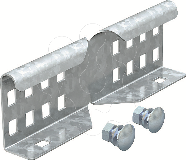 União curva como conector externo para a ligação de caminhos de cabos tipo escada e acessórios com uma altura de aba de 60 mm e perfuração contínua.