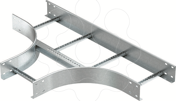 Derivação em T, horizontal, com degraus soldados para todos os caminhos de cabos tipo escada com uma altura lateral de 110 mm.