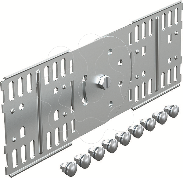 União articulada para caminho de cabos em chapa com 110 mm de altura lateral.