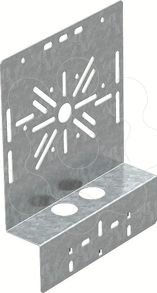 Suporte de montagem angular para fixação na aba do caminho de cabos em chapa.