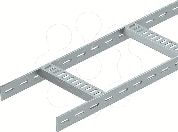 Caminhos de cabos para construção naval com aba perfurada de altura lateral de 40 mm, com degraus trapezoidais perfurados e abertos para baixo. Carga verificada de acordo com a IEC em combinação com conector do tipo SLV.