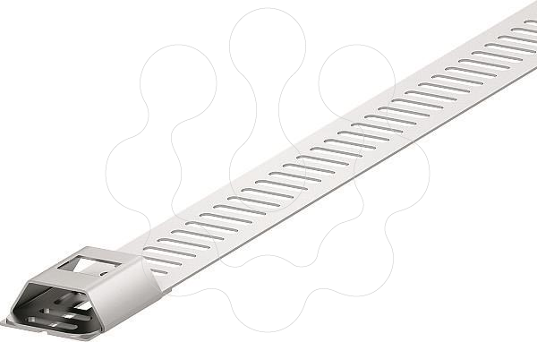 Abraçadeira de fivela em metal com fecho simples. Para altas temperaturas e fixação resistente a intempéries. Para fixar usar o alicate MBS-Z.