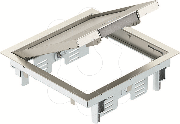 Tampa de encastramento com pega para até 6 aparelhos Modul 45 em 2 suportes universais UT3, utilização em sistemas de chão e calhas de pavimento em interiores. Escada de repouso em chapa de aço galvanizada