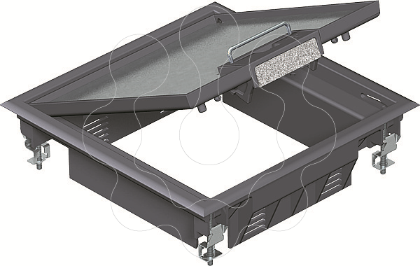 Tampa de encastramento com pega para até 6 aparelhos Modul 45 em 2 suportes universais UT3, utilização em sistemas de chão e calhas de pavimento em interiores.