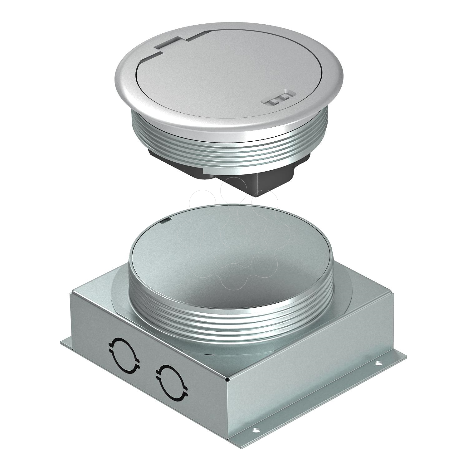 Tampa redonda com estrutura de proteção do pavimento e caixa de pavimento UDL2-120 para montagem em chão de betonilha em áreas interiores. Tampa com uma tomada Schuko simples com alvéolos inclinados a 33°. Lateralmente, perto da tomada existe espaço para instalar, opcionalmente, até 2 conectores de dados. No estado fechado, a tampa pode ser limpa a húmido. A profundidade mínima de montagem é de 70 mm. Superfície cromada.