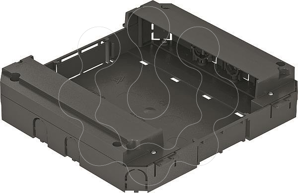 Suporte modular para a instalação de até 8 aparelhagens Modul 45 numa tampa de encastramento padrão vazia ou caixa nivelável vazia do tamanho 9 ou R9. O suporte modular é encaixado na escada de fixação da tampa.