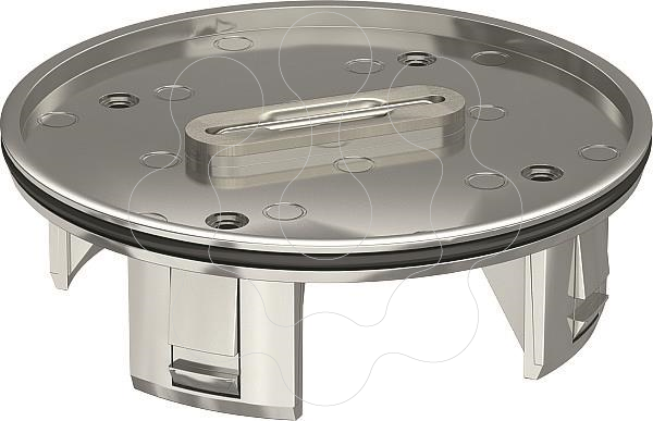 Saída de cabo, variável em altura, para a montagem em cassetes RKF, assim como em tampas niveláveis redondas e quadradas RKFR e RKFN. Saliente no pavimento quando em utilização, ao nível do pavimento quando não utilizado. Aplicação em pavimentos de limpeza com água. Com entalhe de pavimento com 4 mm, para revestimento por parte do cliente utilizando material resistente ao corte, e com arco do punho.