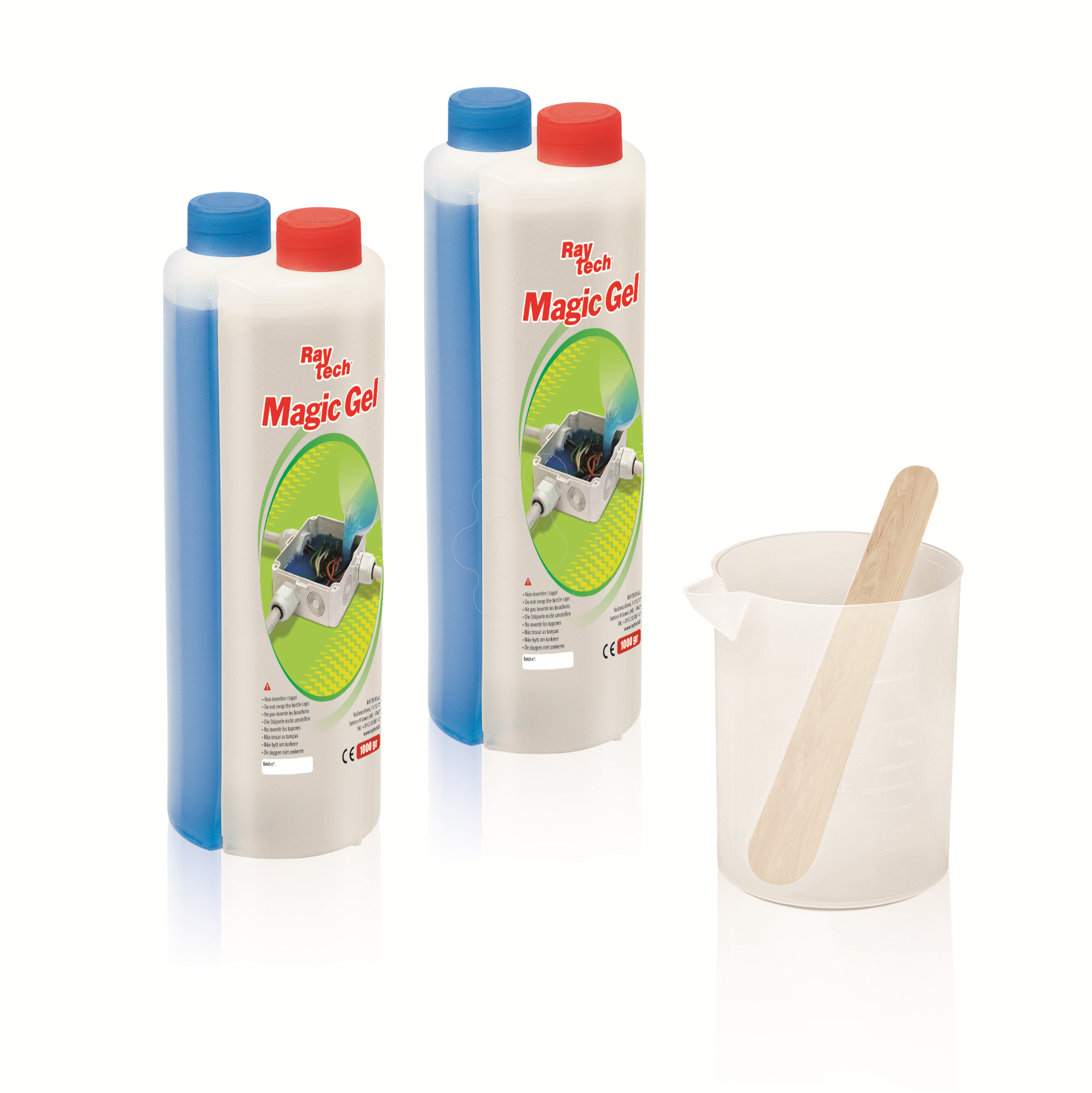 Gel bicomponente com elevadas propriedades dieléctricas e térmicas, ideal para sistemas de ligações elétricas.O gel vertido em invólucros adequados, garante um grau de proteção IP68.Embalagem composta por 2 mono-frascos bi-componente 1000ml - 1 copo pequeno - 1 espátula para misturar
