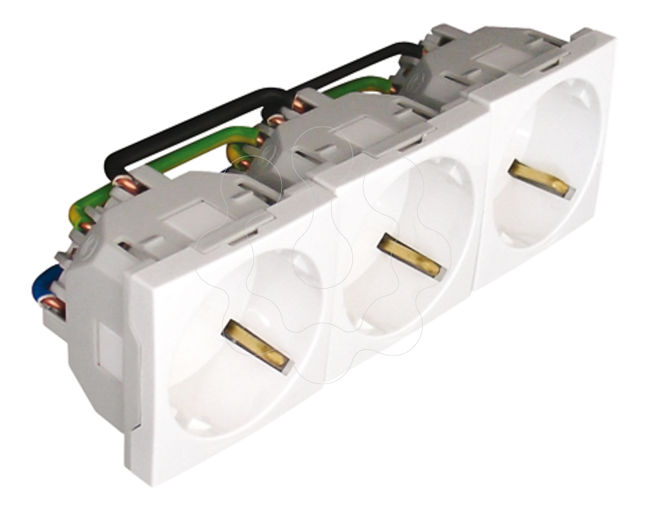TOMADA TRIPLA SCHUKO COM OBTURADOR - 6 MÓ,DULOS BRANCO