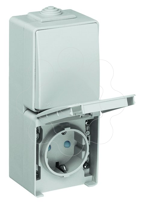 COMUTADOR DE ESCADA / TOMADA SCHUKO VERTICAL COM OBTURADOR CINZENTO