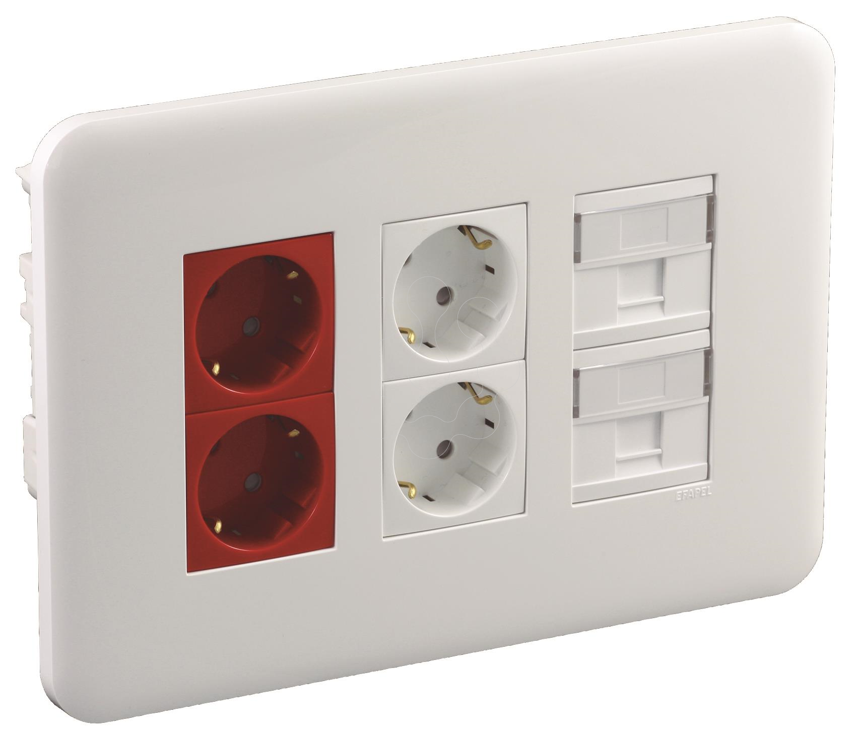 Posto de Trabalho 83402 CBR. Posto de Trabalho Embeber 3x4 Módulos. Posto de trabalho com 2 Schuko VM + 2 Schuko BR + 2 RJ Dimensões exteriores (mm): 245 x 170