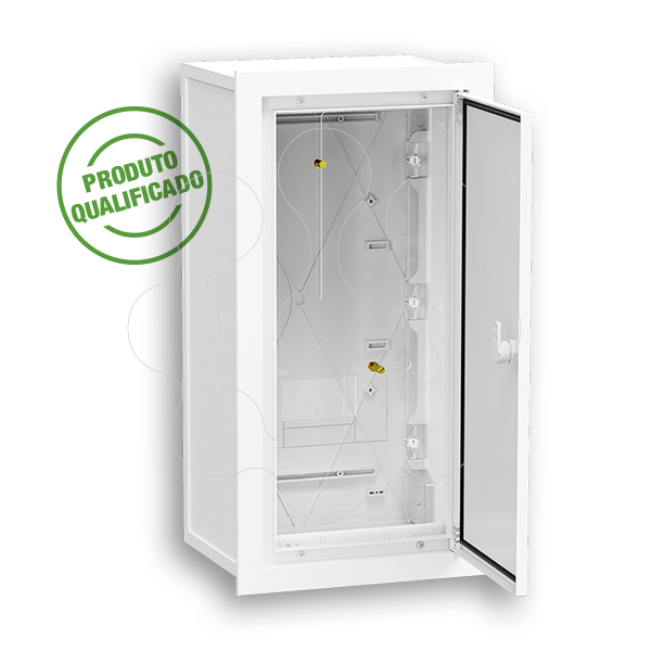 Produto Qualificado pela E-REDES de acordo com a DMA-C62-805/N, para instalação do contador ECCE (Equipamento de Contagem e Controlo de Energia). Inclui fechadura triangular plástica com chave (cód. 00206).