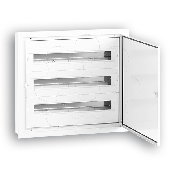 Caixas Quadro, de 16 a 72 módulos, com 125mm de profundidade. Inclui barramentos isolados neutro e terra, máscaras e etiquetas de marcação de circuitos. Chassi amovível.
