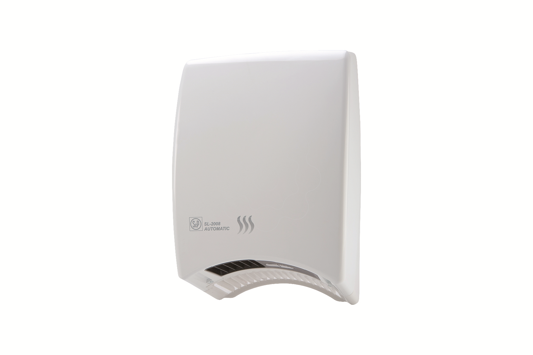 Seca-mãos por ar quente, com sistema de segurança que evita o funcionamento contínuo no caso de se colocar algum objeto por baixo. Incorporam protetores térmicos no motor e na resistência.. SL-2008 A SILVER. Seca-mãos por ar quente Série SL-2008 A SILVER