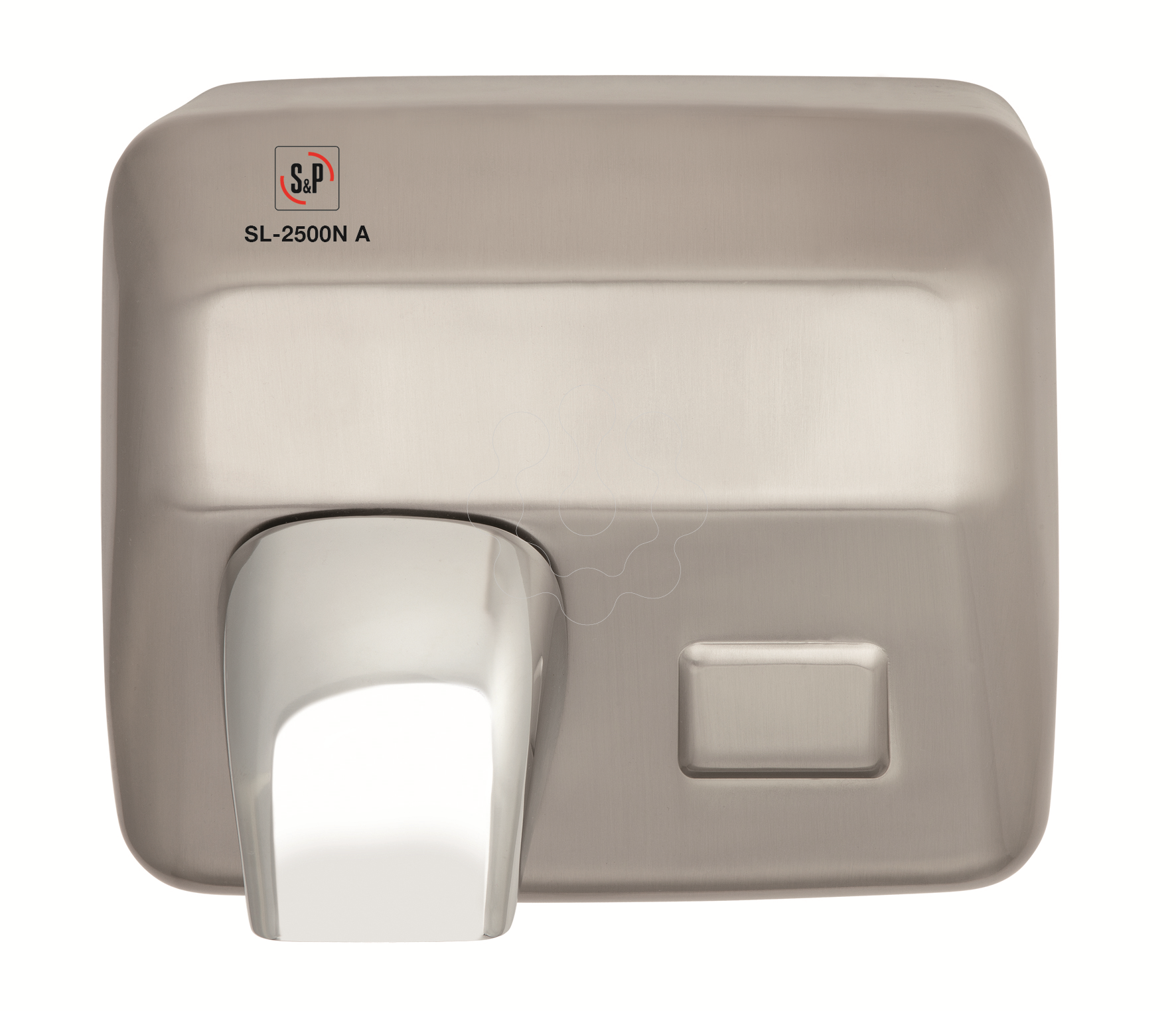 Seca-mãos por ar quente, de configuração anti-vandalismo, com carcaça metálica com proteção anticorrosiva, acabamento exterior anti-impressões digitais e boca orientável a 360º.. SL-2500 NA. Seca-mãos por ar quente Série SL-2500 NA